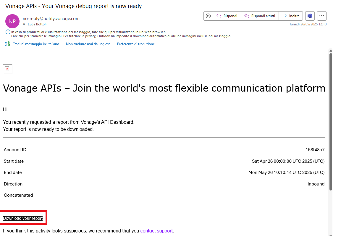 3. An email with the download link will be sent to support@becloudsolutions.com. Once received, click on Download your report and a .zip file will be downloaded